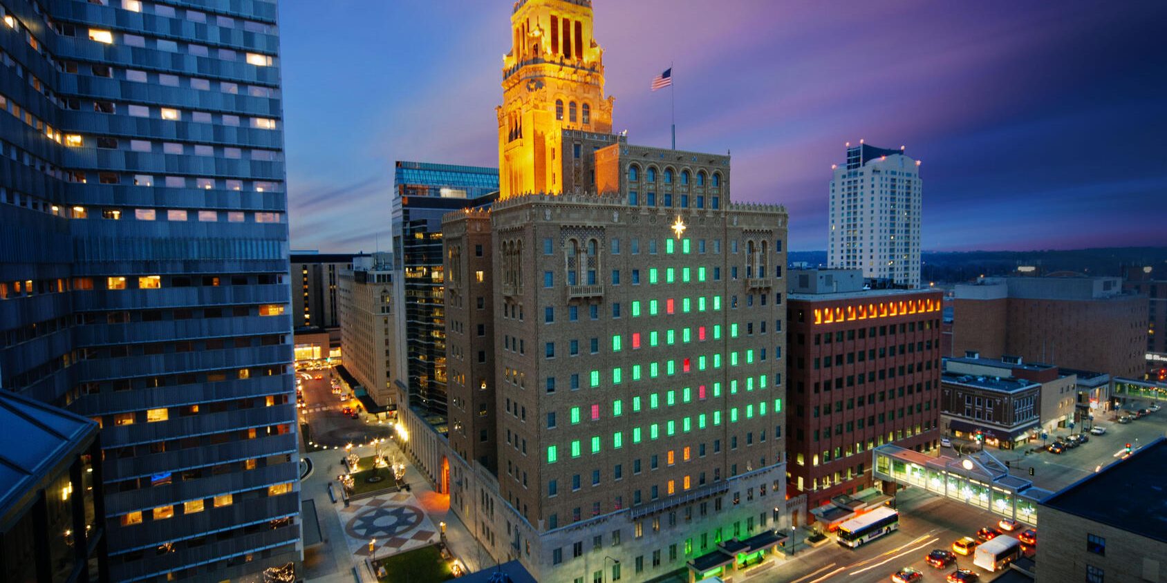 We have to go back several decades to a collaboration between Mayo Clinic and the city of Rochester. A local business leader suggested using the south façade of the Plummer Building for seasonal light displays. Harry Harwick, Mayo Clinic’s chief administrative officer, secured necessary approvals, and patterns of colored lights forming the shape of a tree took root as an annual event from 1950 to 1956. “Night watchmen” manually turned light switches of the designated rooms on and off each evening to create the pattern. However, over time, remodeling of the Plummer Building made it difficult to continue the display, and energy crises in later years shut down the tradition entirely.