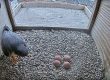 Now that all the eggs have arrived, Hattie and Orton are incubating them fulltime. Hattie spends 70–80% of her day and all night keeping the eggs warm, occasionally taking short breaks to eat, stretch or sunbathe. During these times, Orton, though smaller, carefully takes over, although it takes him a bit more time to get all of the eggs under his smaller body. Both falcons have a brood patch — bare skin on their abdomen — to transfer body heat directly to the eggs. While Hattie is busy incubating, Orton will be busy doing all the hunting for himself and Hattie.