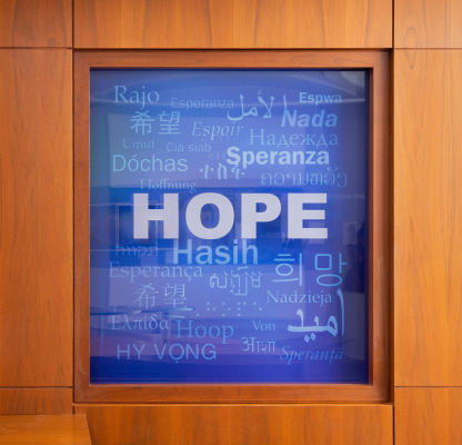 In a focus group, one patient said “MAYO is another word for HOPE.” This sign greets visitors to Heritage Hall museum with the word HOPE translated into many languages. At Mayo Clinic, each person is welcome and valued.