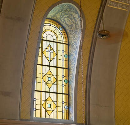 “Clerestory” is a medieval English word. It derives from “clere,” meaning “clear” or “light,” and “story,” which refers to the level of a building. Clerestory windows are a row of windows above the nave, symbolically bringing the light of heaven to the congregation. Light coming through these amber windows produces a sense of peace, worship, and quiet reflection.